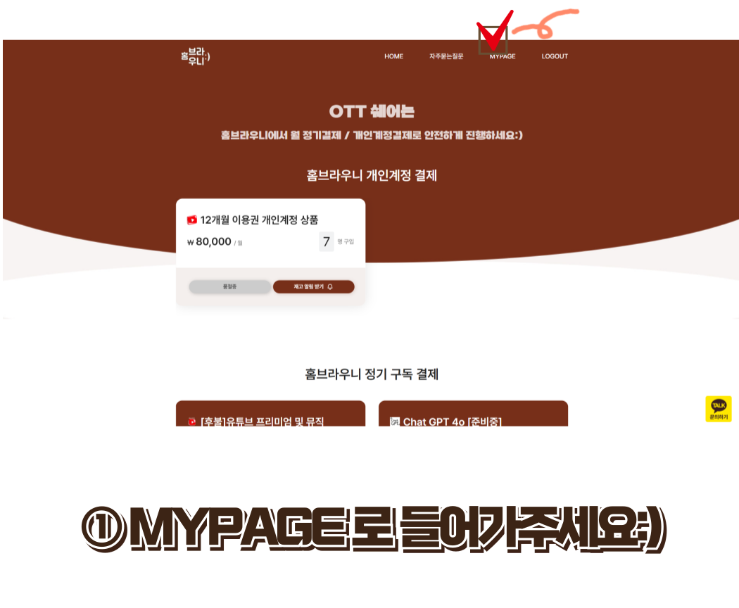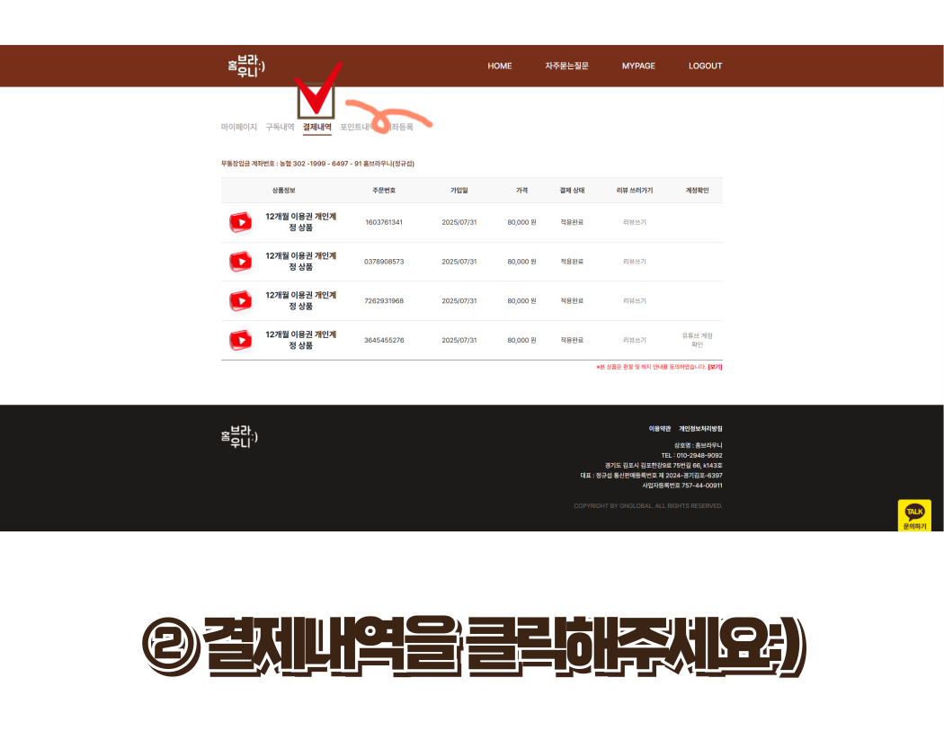 [유튜브 이용권] 홈브라우니 계정으로 구매한것은 어디서 확인 하나요?
