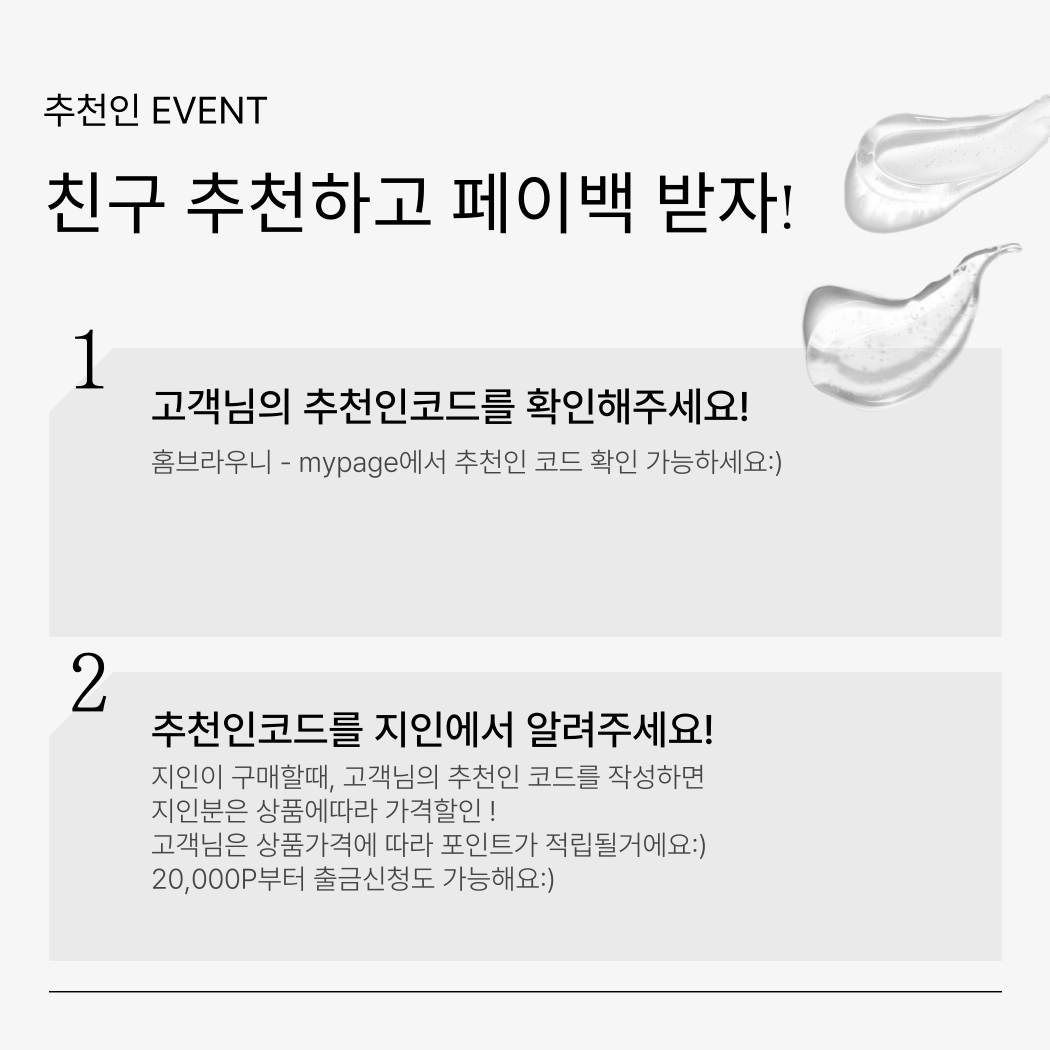 추천인한테는 상품 금액에 따라 포인트 지급이 됩니다 :)